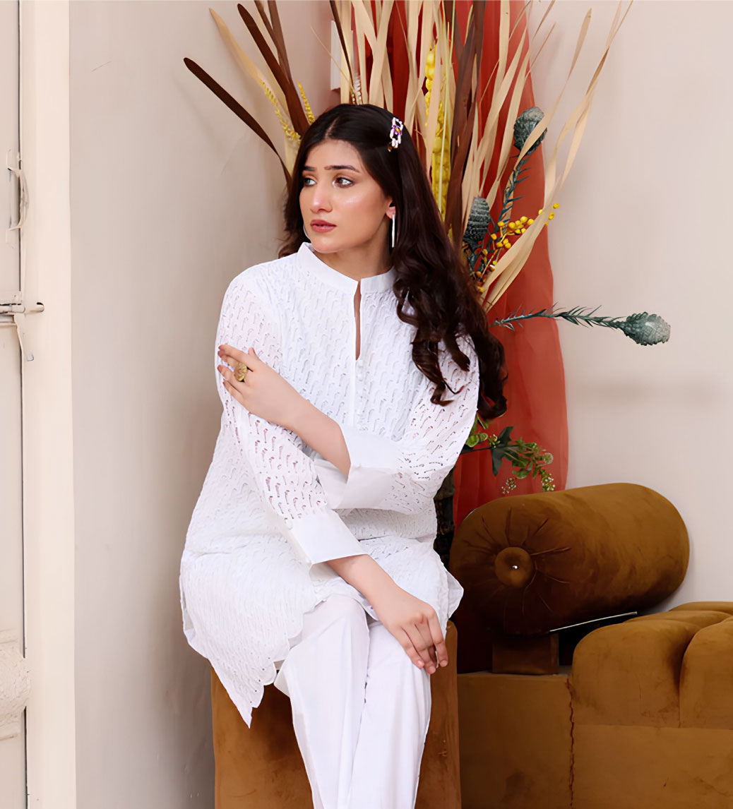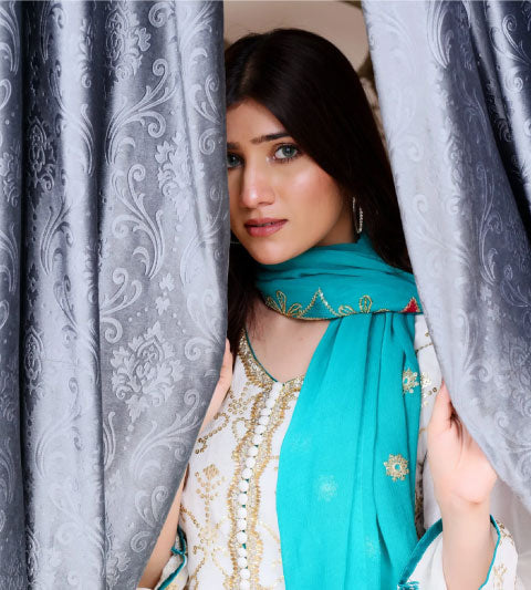 Shabnam Dress – Boski Linen Outfit with Long Shirt & Silk Dupatta
