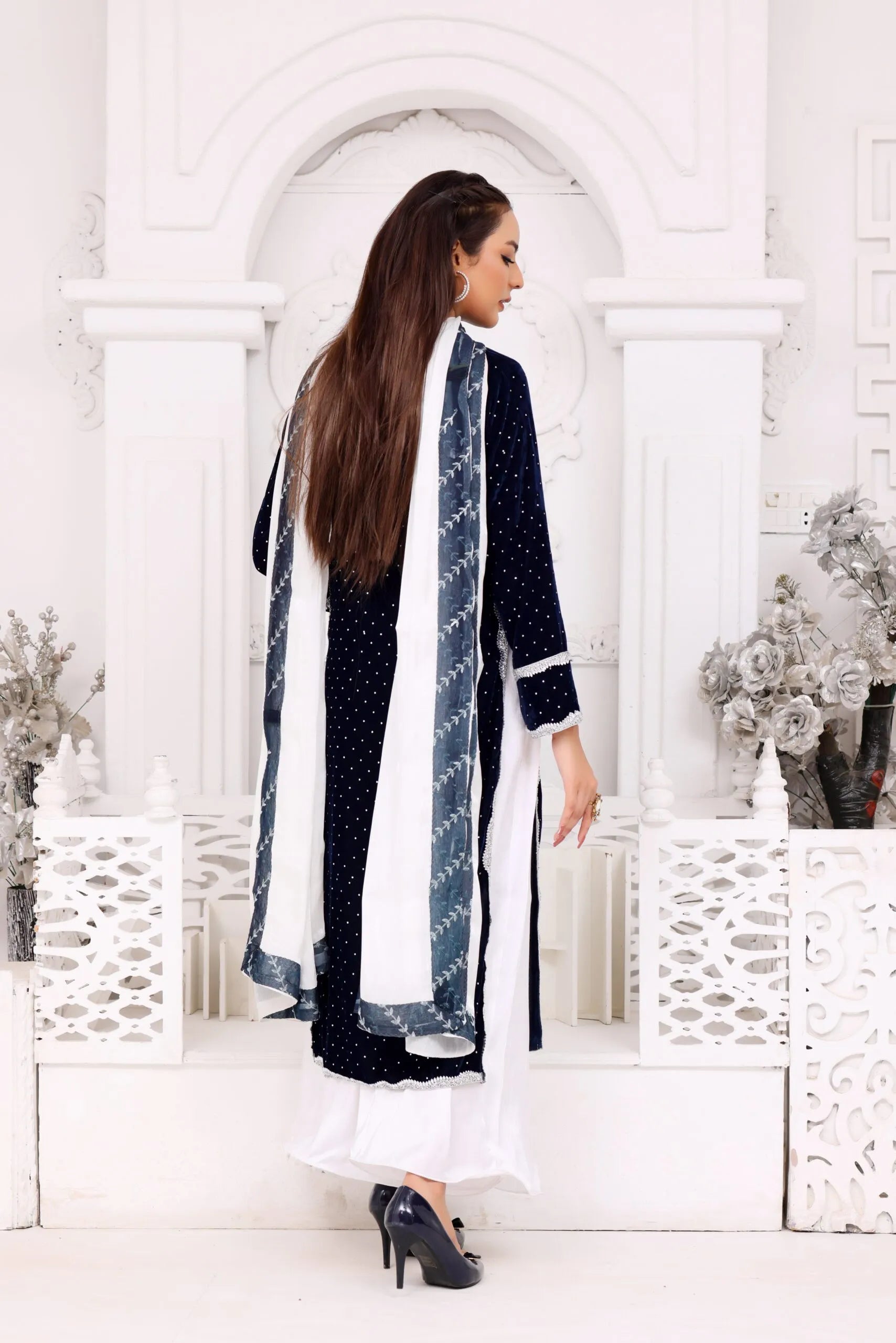 Silk Dupatta: Completed with a soft, flowing silk dupatta that adds a graceful touch to