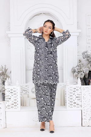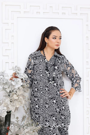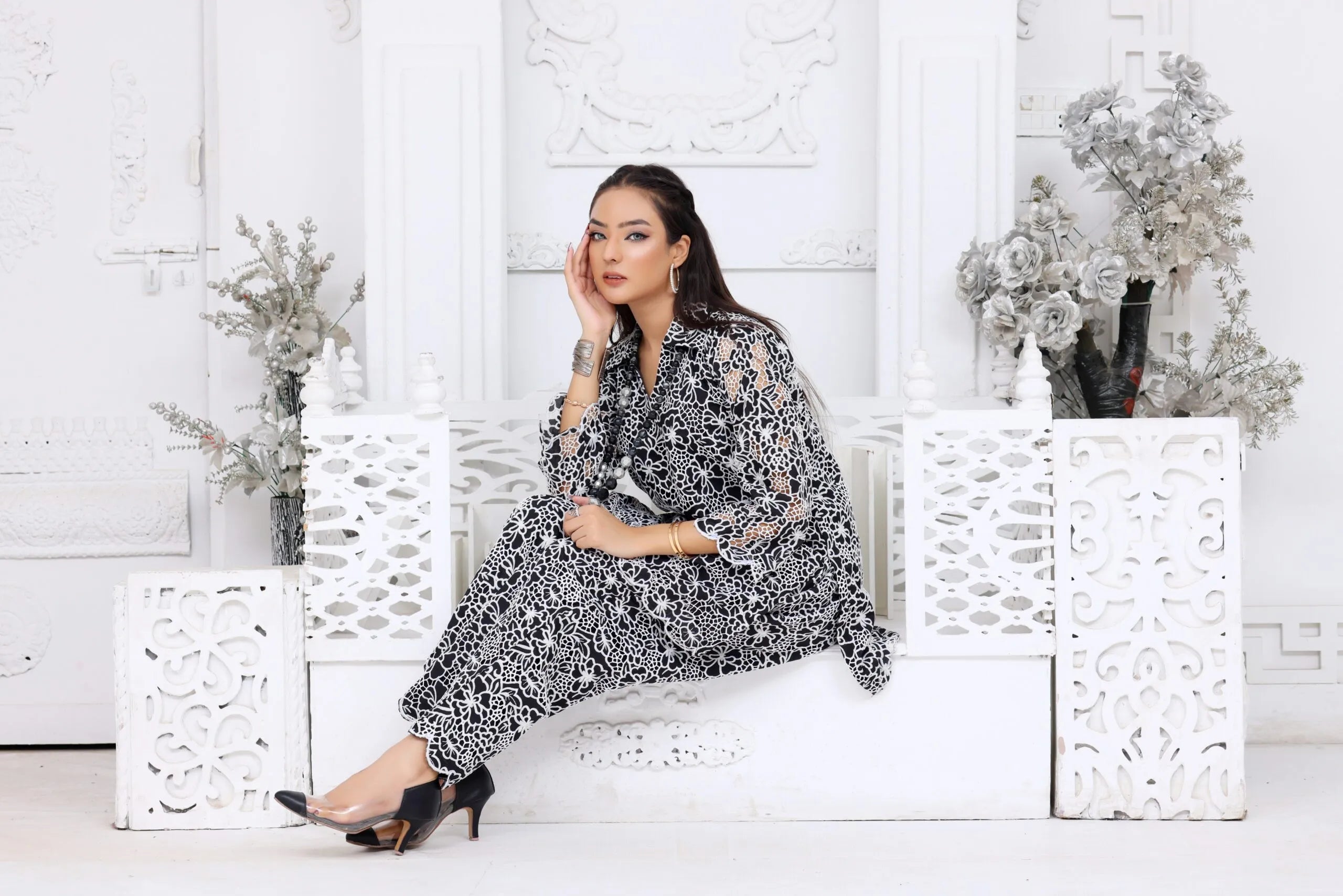 Classic contrast meets intricate craftsmanship in this Black and White Crochet Co-ord Set,
