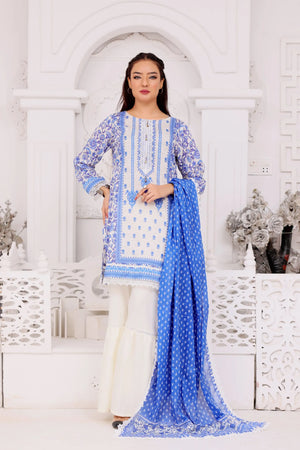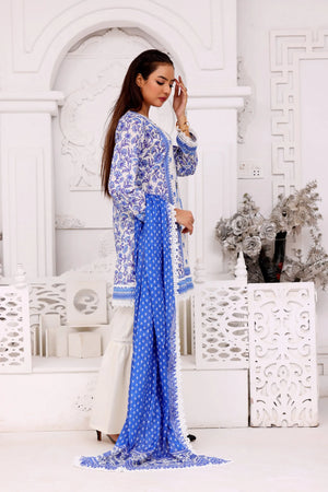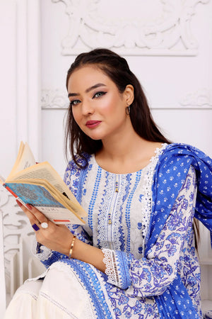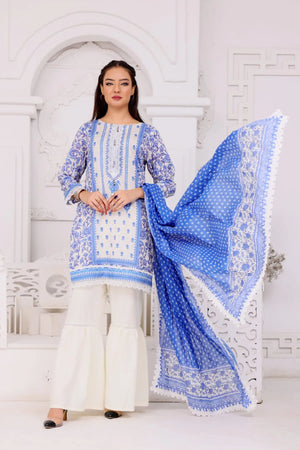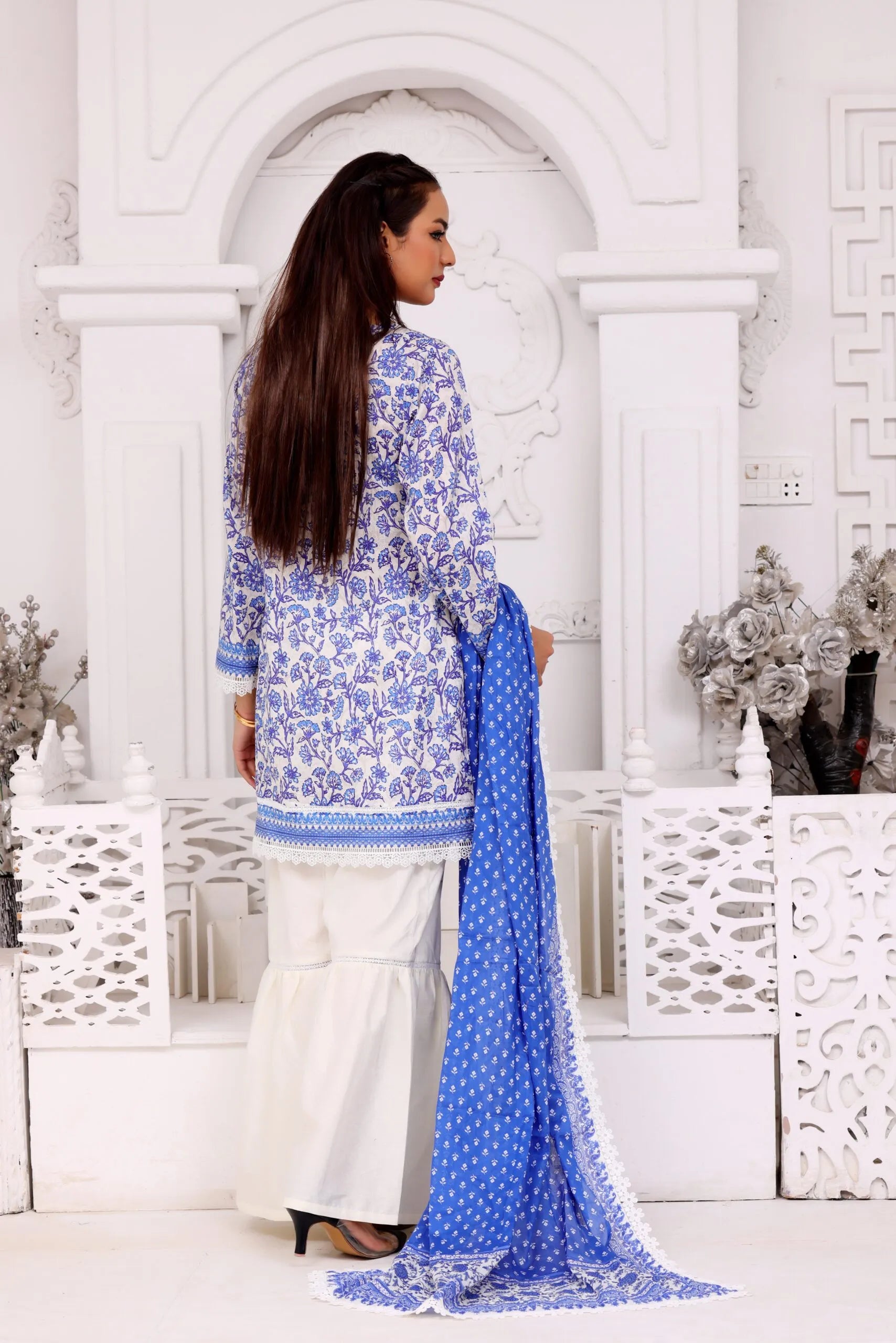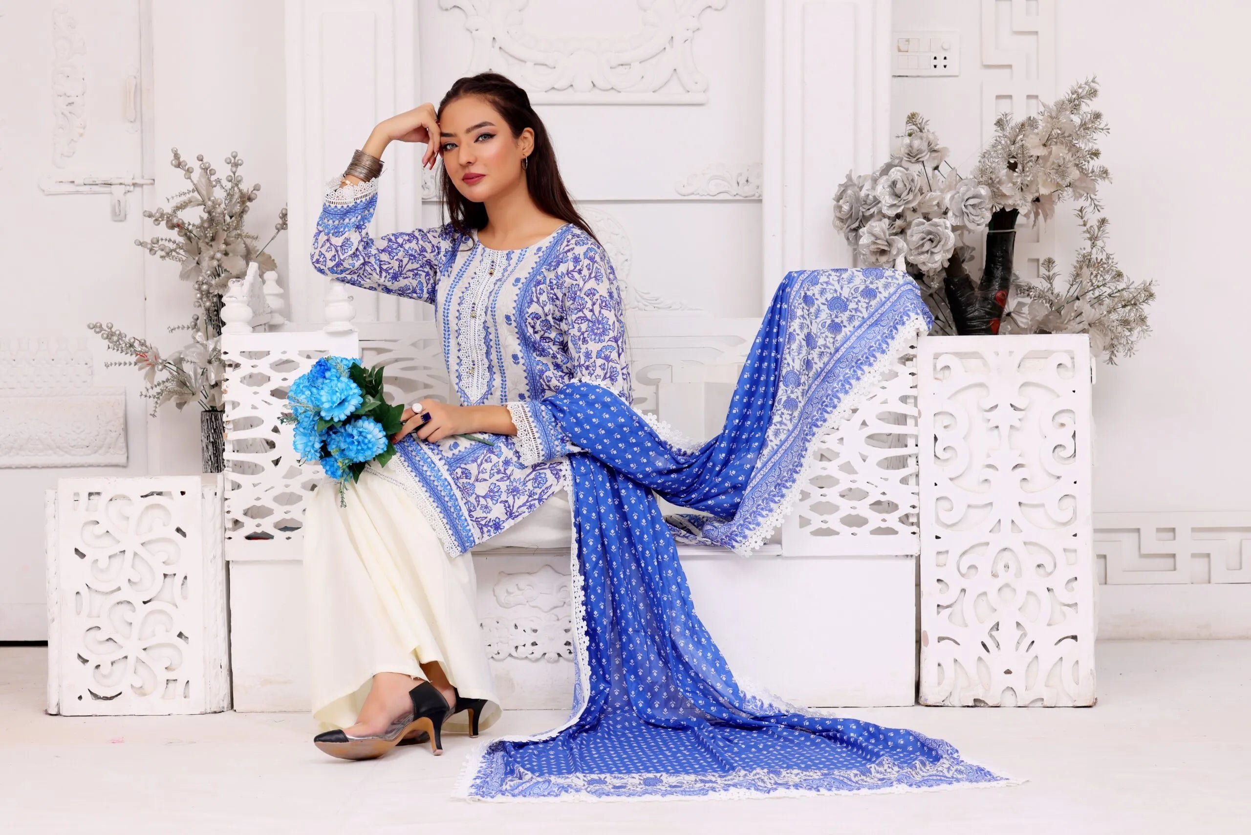 Add a touch of elegance and tradition to your wardrobe with this stunning Blue & White Lawn