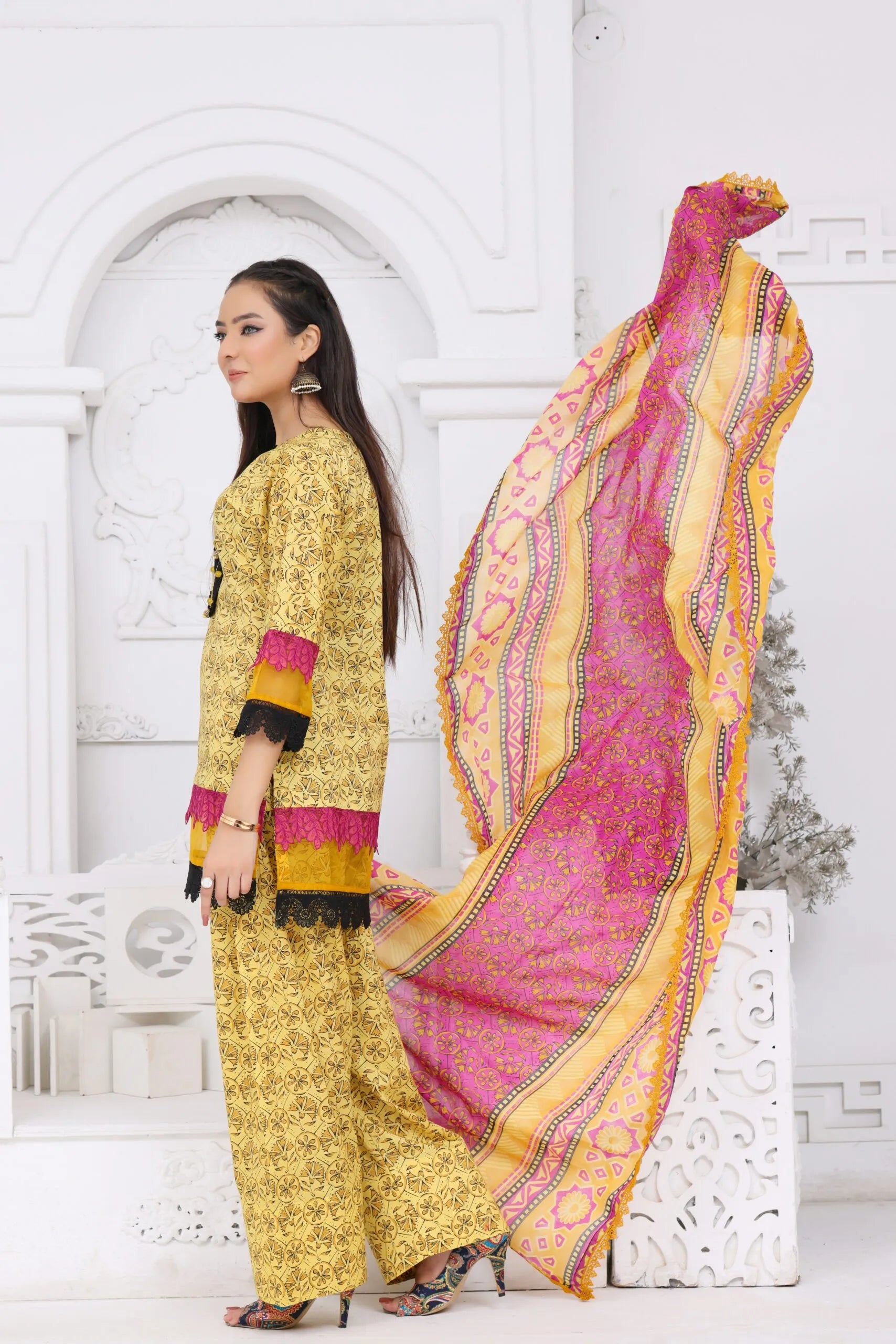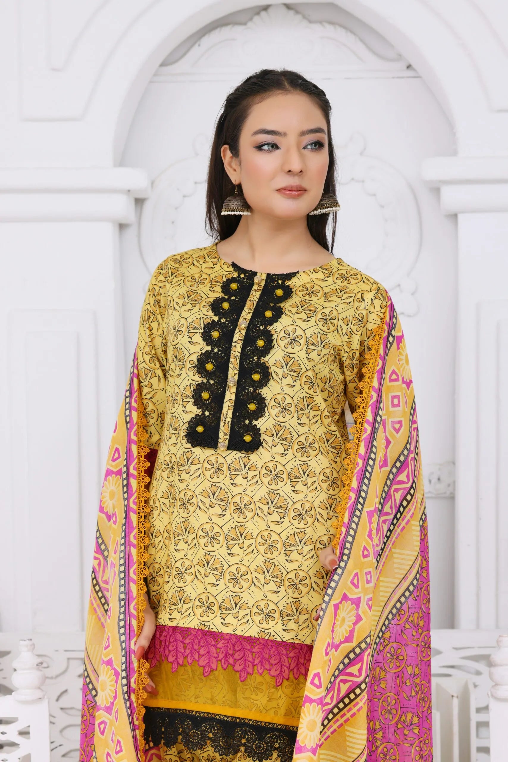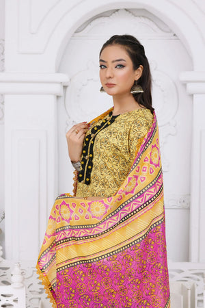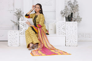 Make a bold yet elegant statement with this beautifully designed Yellow Lawn 3-Piece Dress,